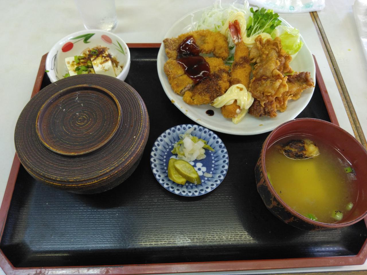 ある日の日替わりランチ3(とんかつ、エビフライ、からあげ)