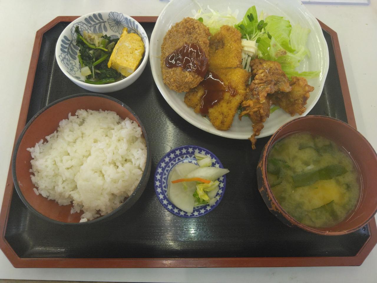 ある日の日替わりランチ1(メイン:コロッケ、とんかつ、からあげ)